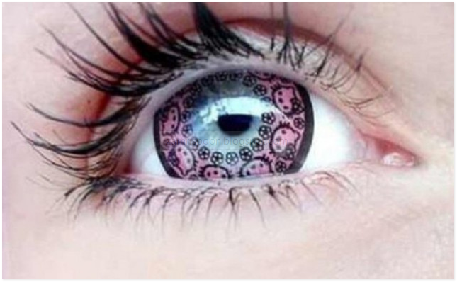 Pepatah bilang datangnya cinta dari mata turun ke hati. Namun bagaimana jika ada Hello Kitty di mata anda? Apakah pepatah itu berlaku? Kanta lekap @ Contact lens Hello Kitty mungkin akan lebih menarik perhatian setiap orang yang melihatnya. Apalagi kanta lekap itu hadir dengan warna hijau, kelabu, biru, merah muda, coklat, ungu, hitam, dan coklat. Kanta lekap Hello Kitty itu dijual pada harga $ 19.